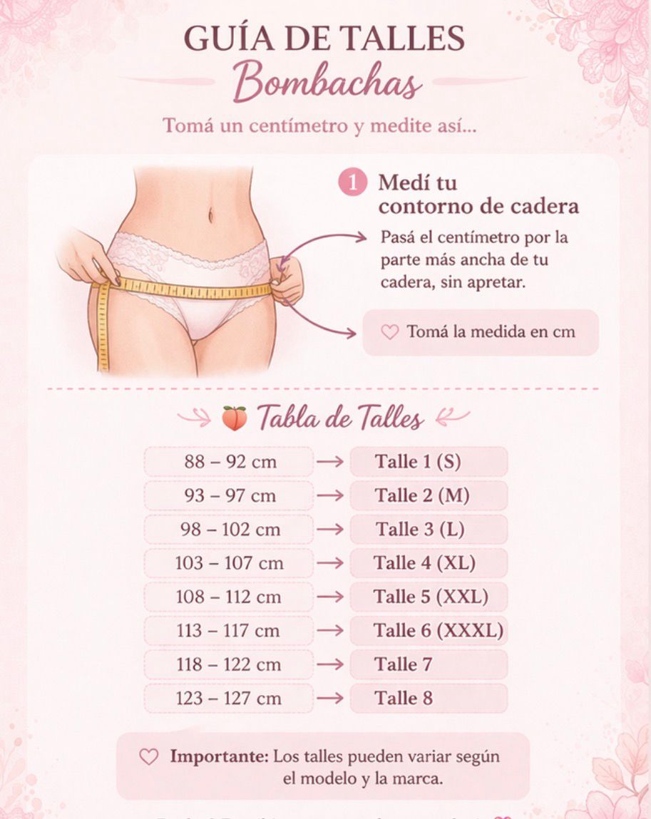 Elegir la bombacha adecuada es sencillo si conocés bien tus medidas y usás la tabla de talles como guía. Así, vas a sentirte cómoda y segura con tu prenda íntima.